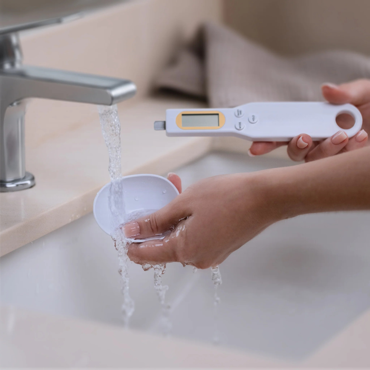 La partie cuillère est détachable et lavable à l’eau. Le corps électronique se nettoie simplement avec un chiffon humide.